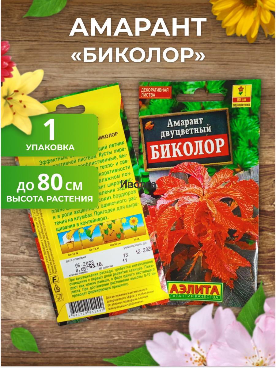 Амарант двуцветный "Биколор" - изысканный быстрорастущий летник с декоративной листвой. Растения прямостоячие, крепкие, ветвистые, образуют кусты пирамидальной формы высотой 60-80 см. Амаранты теплолюбивые, полной декоративности достигают на открытых, солнечных местах. Достаточно засухоустойчивые, полив необходим только при длительной засухе. Широко используются для оформления заднего плана цветников, высоких бордюров и в роли акцентного одиночного растения на клумбах.