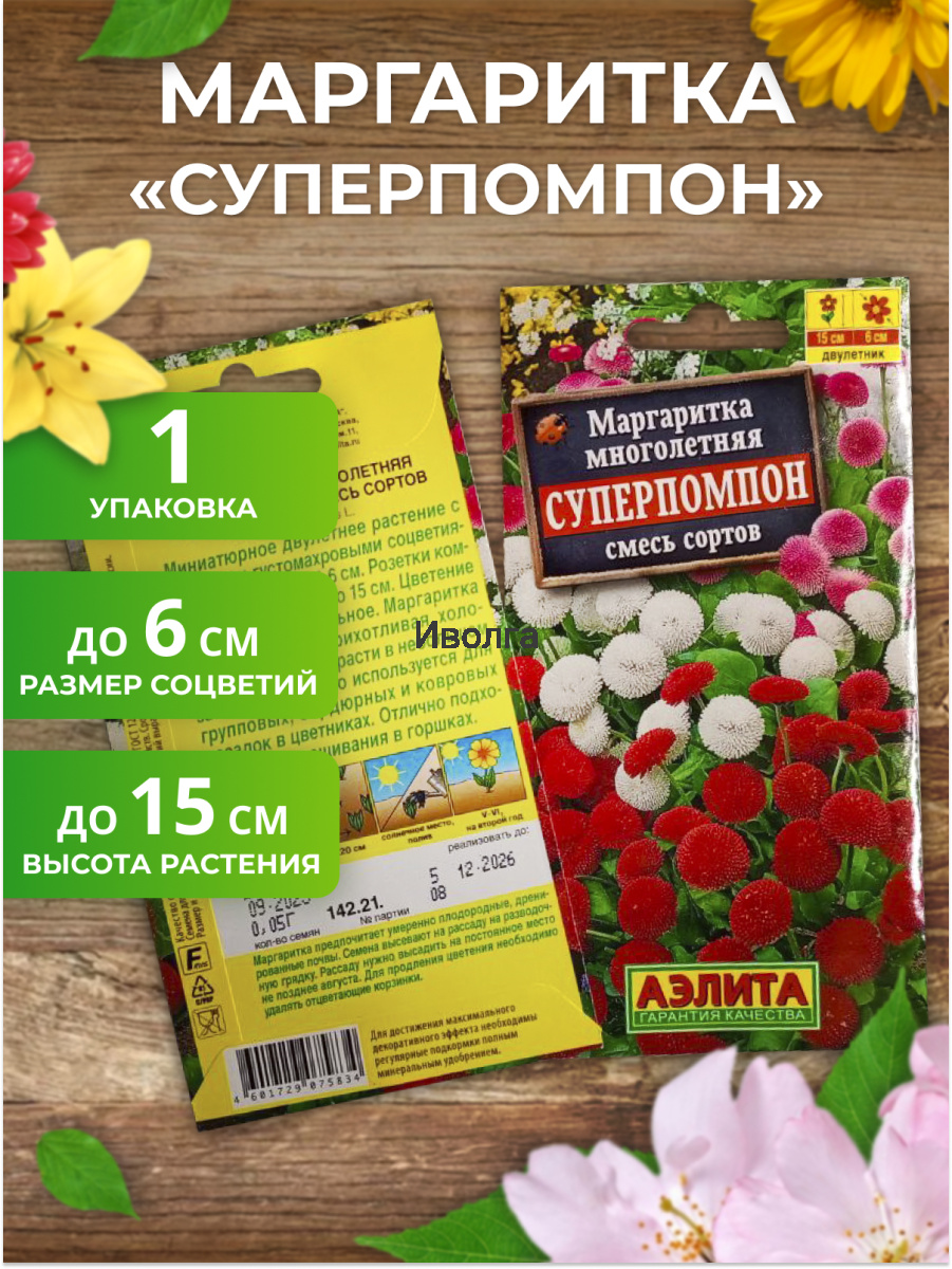 2. Маргаритка многолетняя "Суперпомпон" смесь сортов — 1 шт.