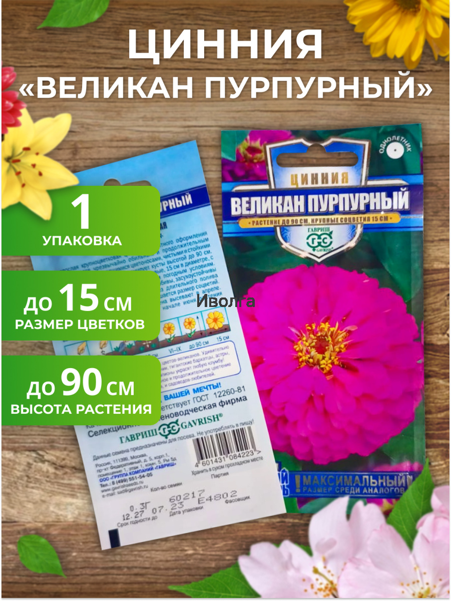 4. Цинния "Великан пурпурный" — 1 шт.